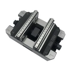 The Self-centering Vise is a precision concentric fixture designed for CNC machining centers with 4-axis and 5-axis capabilities. It features high rigidity serrated jaws that provide automatic clamping and precise positioning.